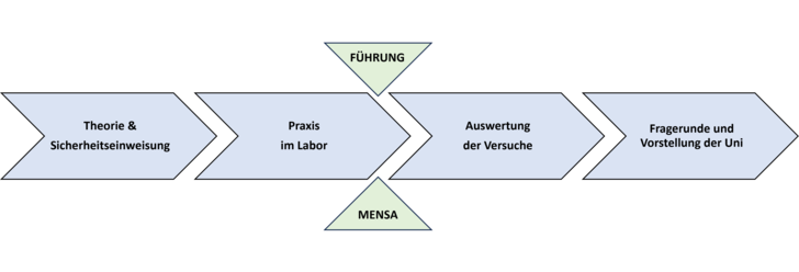 Zu jedem Themenfeld werden Kurzeinführungen und verschiedene Experimente angeboten, die je nach Zeit und Interesse beliebig zu einer Experimentiersafari kombiniert werden können (Baukastenprinzip).